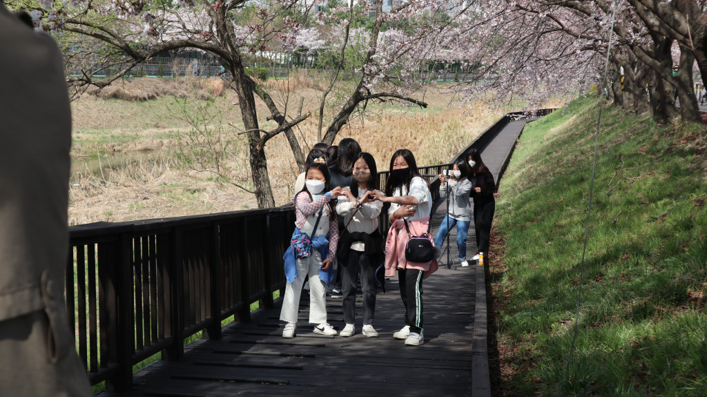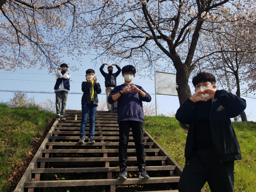 예배 후에는 교회 앞으로 나가 벚꽃 길을 걸으며 사진 찍는 시간을 가졌습니다.