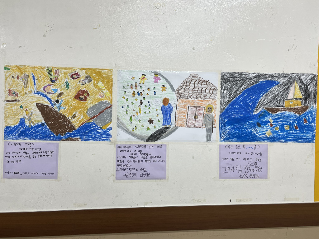 그림을 그리며 서로 협동하고, 말씀을 되새길 수 있는 귀한 시간을 보냈습니다.