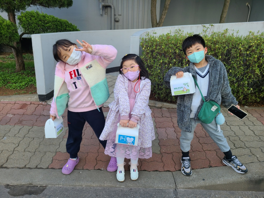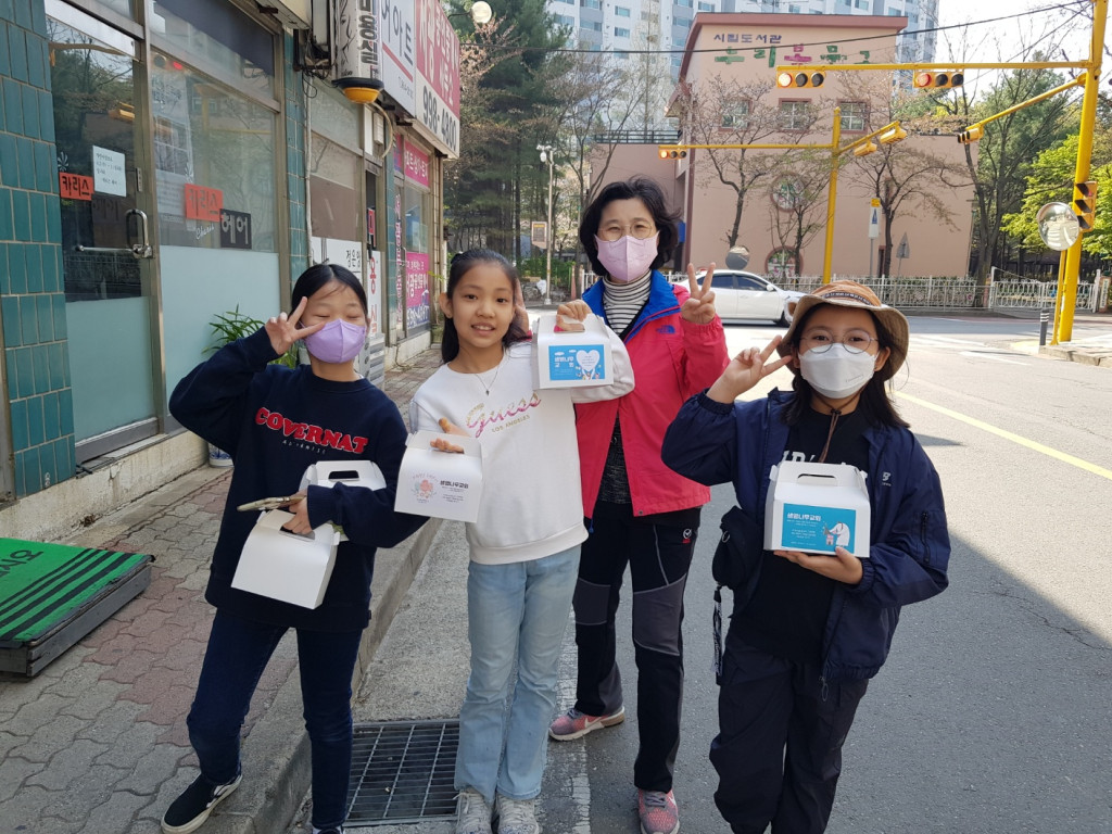 그리고 두 팀으로 나누어 아파트 경비원, 배달원 등 우리 이웃에게 부활의 기쁜 소식을 나누었습니다.