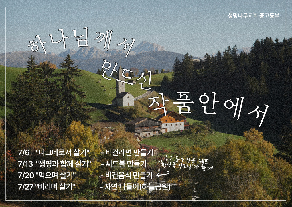 중고등부 마지막 수련회 시간으로 '하나님의 작품 안에서 버리며 살기'에 대해 배웠습니다.