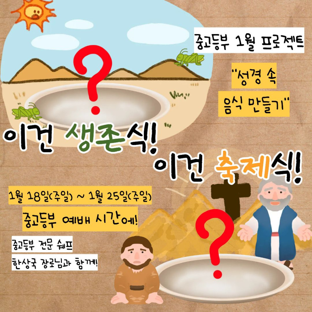 중고등부는 1월 프로그램으로 <성경 속 음식 이야기>를 나누며, 성경 음식을 만들어 먹는 시간을 갖습니다.