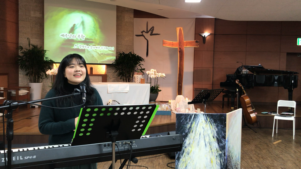 노래를 전공하는 다른 교회 청년을 초대하여 찬양을 부탁하고, 거기에 전도사가 나레이션과 짧은 설교를 덧붙이는 형식으로 구성했습니다.