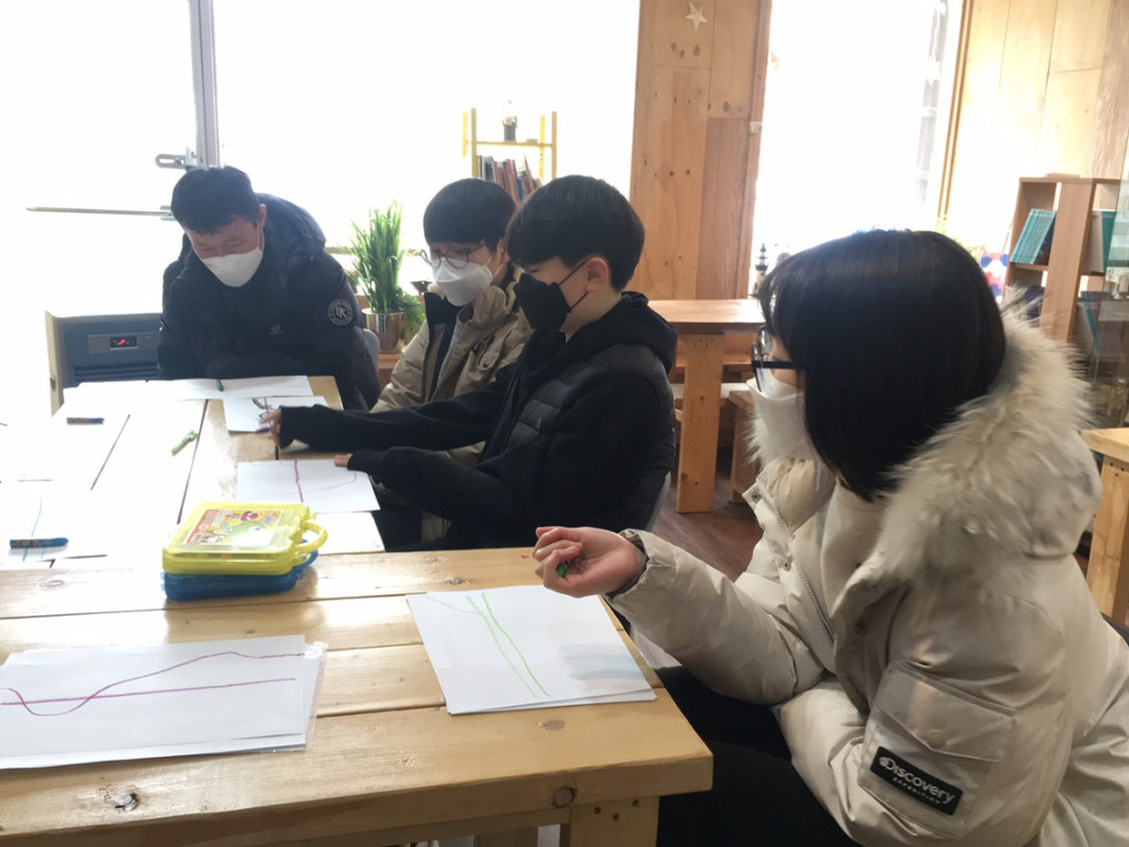 2부 활동으로 '일주일 감정 그래프'를 그려 서로의 삶과 나와 함께 계시는 하나님을 나눴어요.