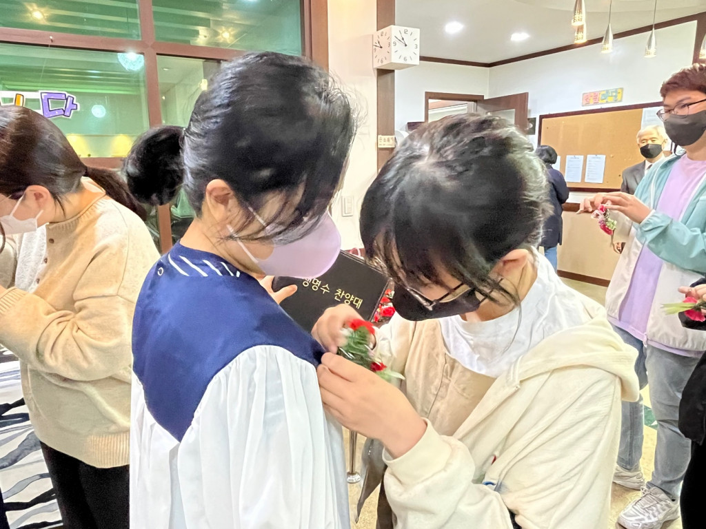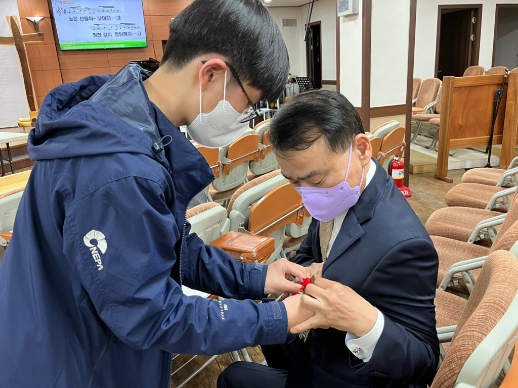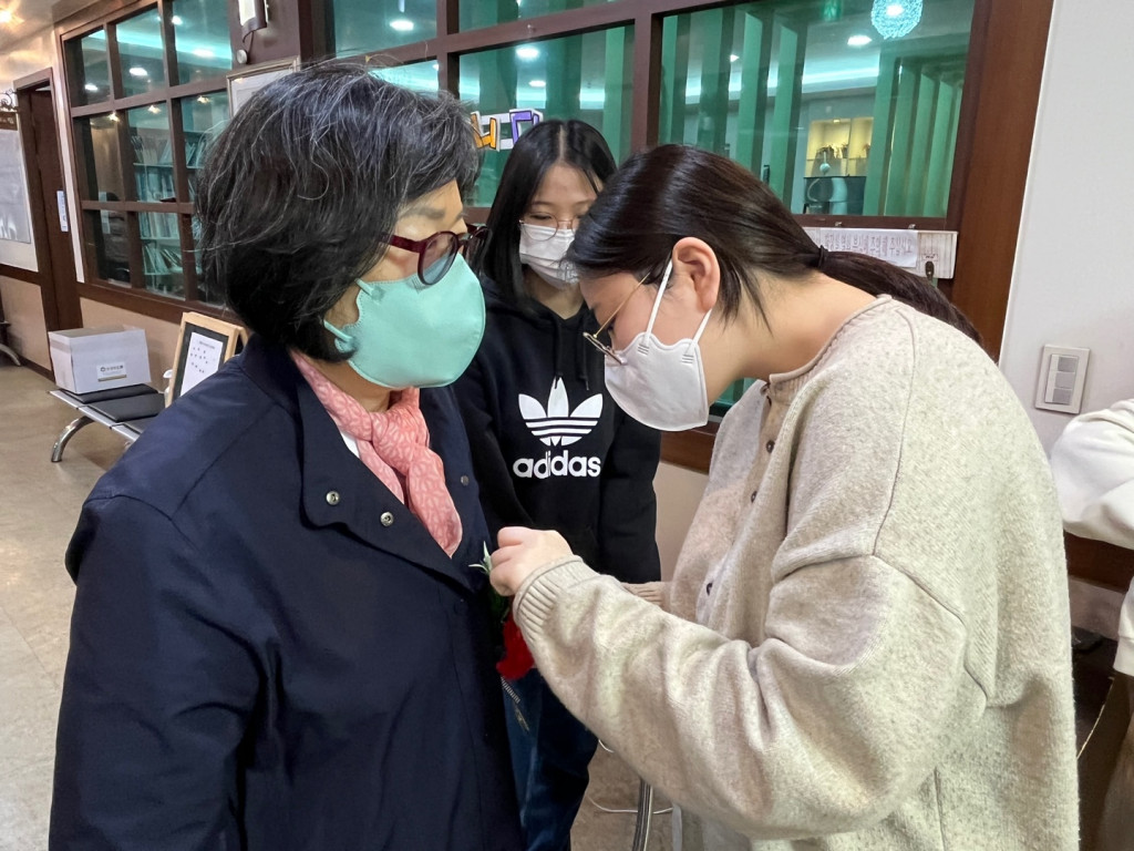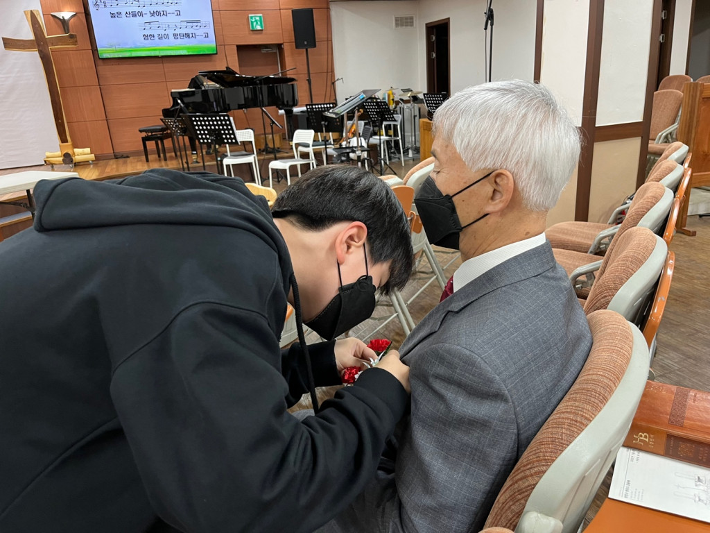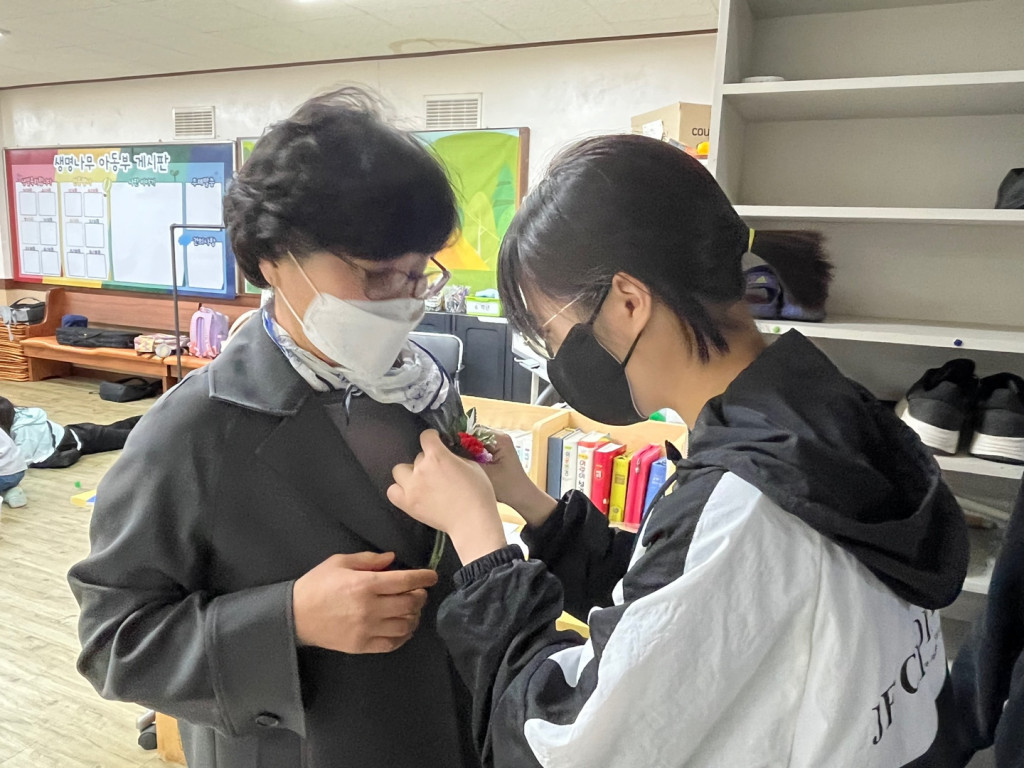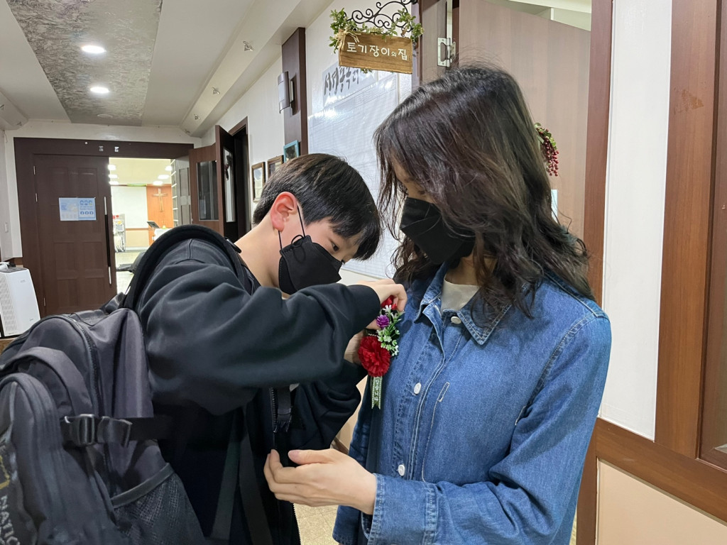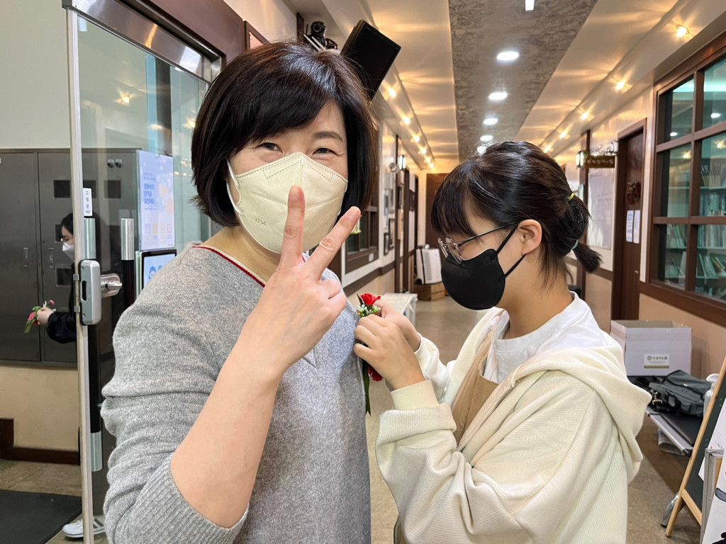 2부 활동으로 진심으로 감사하는 마음으로 카네이션을 달아 드렸습니다!