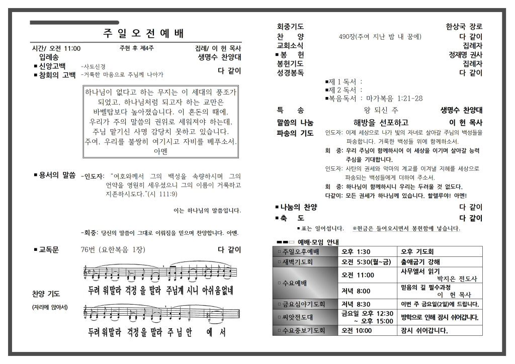 예배 안내