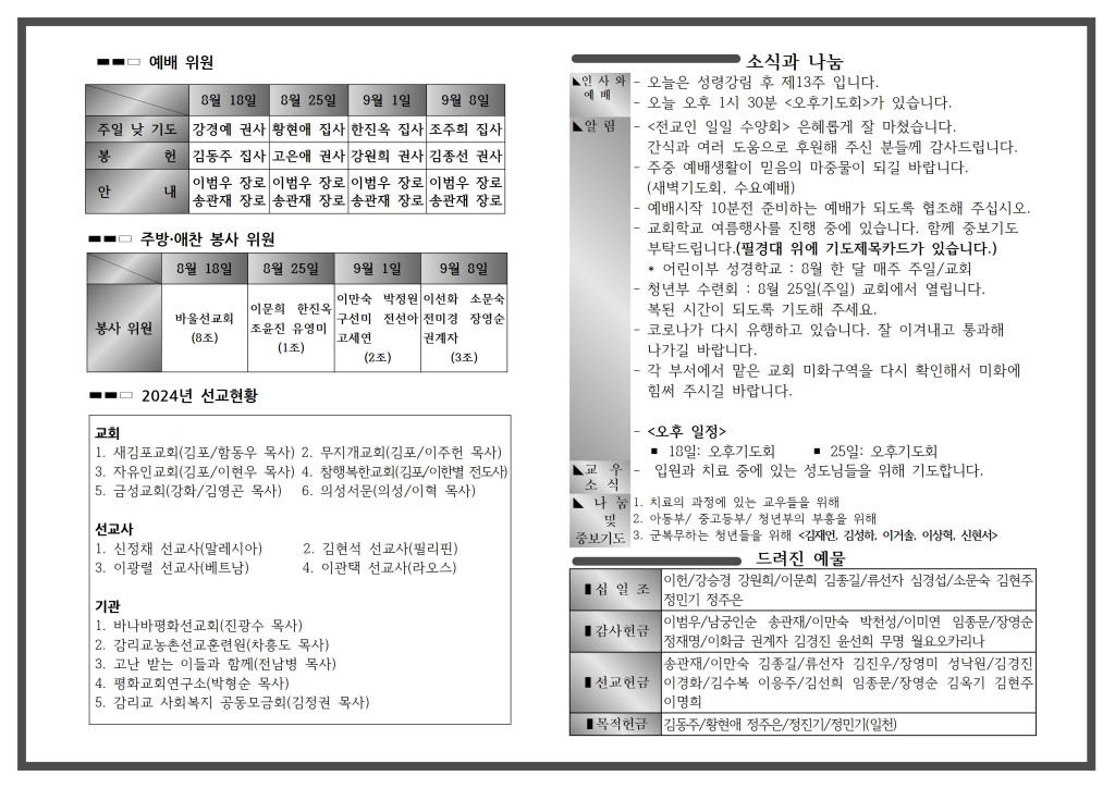 <자료> 2024년 8월 25일 주보 :: 다음 글
