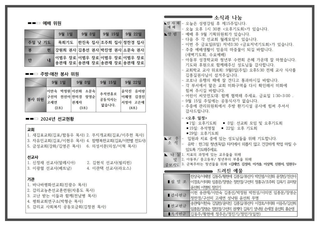 <자료> 2024년 9월 8일 주보 :: 다음 글