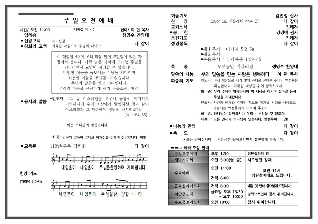 예배 안내
