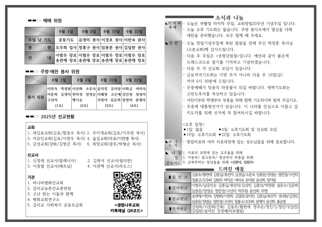 <자료> 2025년 6월 15일 주보 :: 다음 글