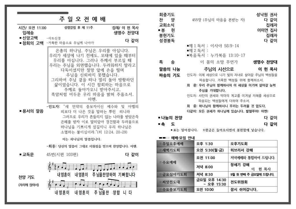 예배 안내