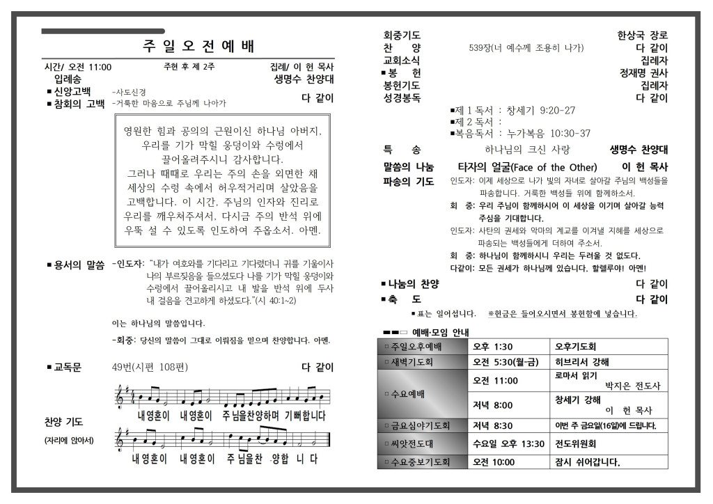 예배 안내