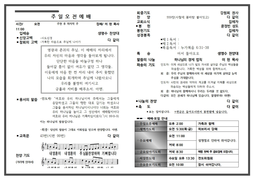예배 안내