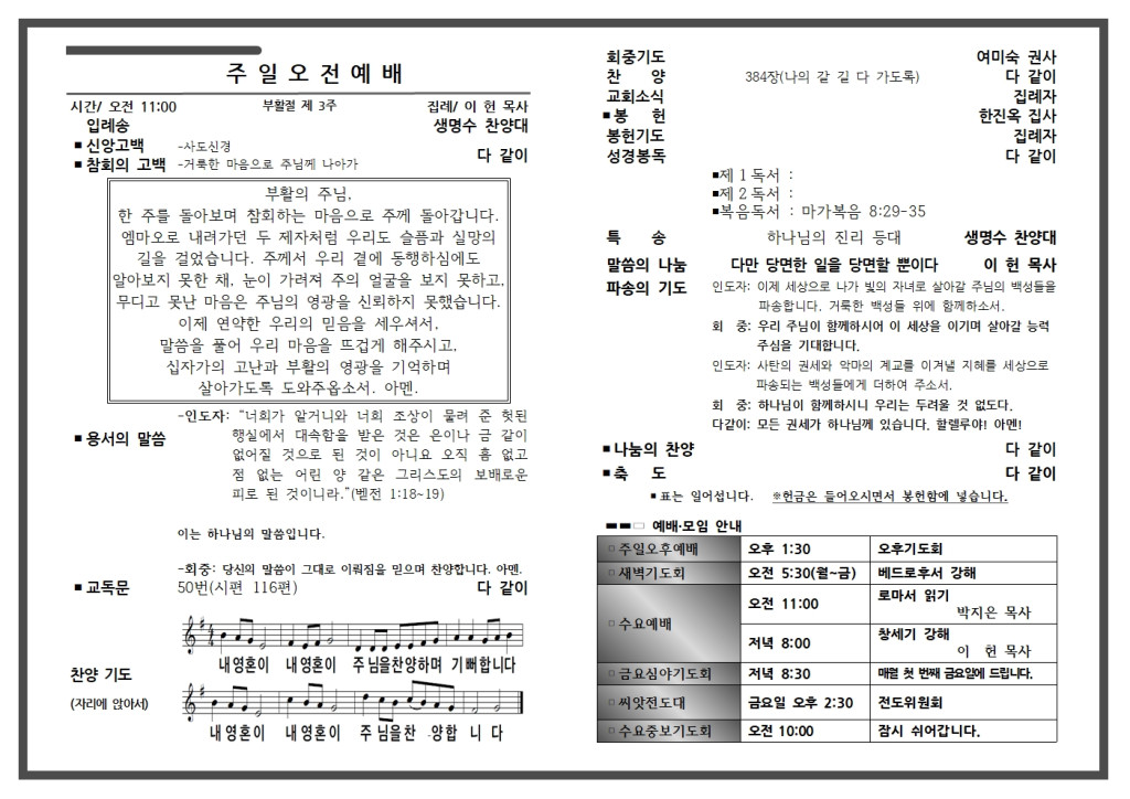 예배 안내