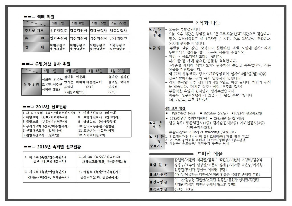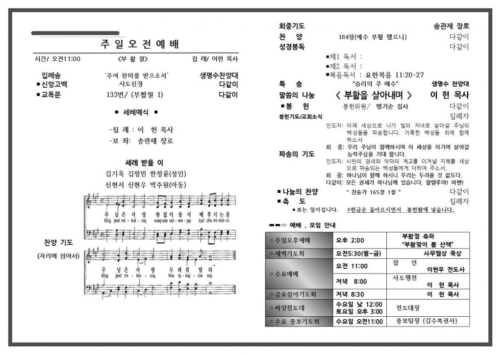 4월 첫 번째 주일 주보입니다.