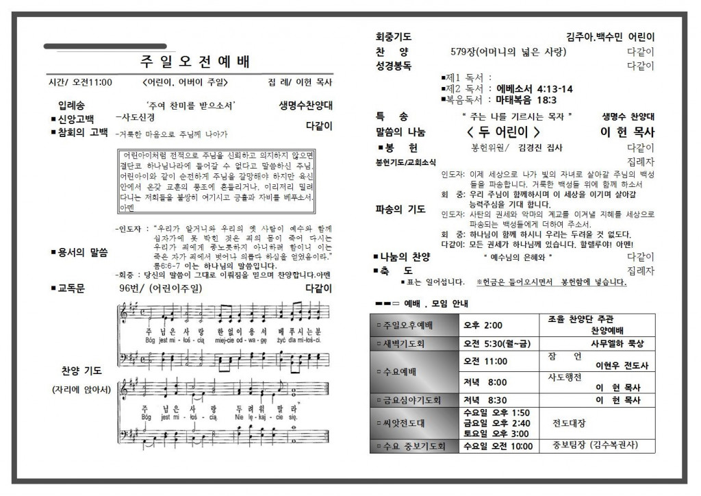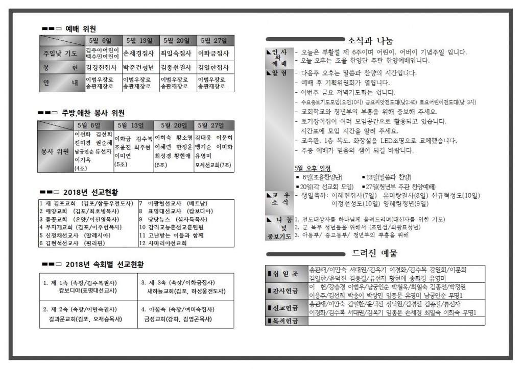 5월 첫 번째 주일 주보입니다.