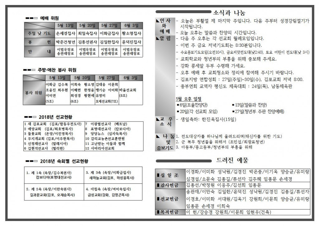 5월 두 번째 주일 주보입니다.