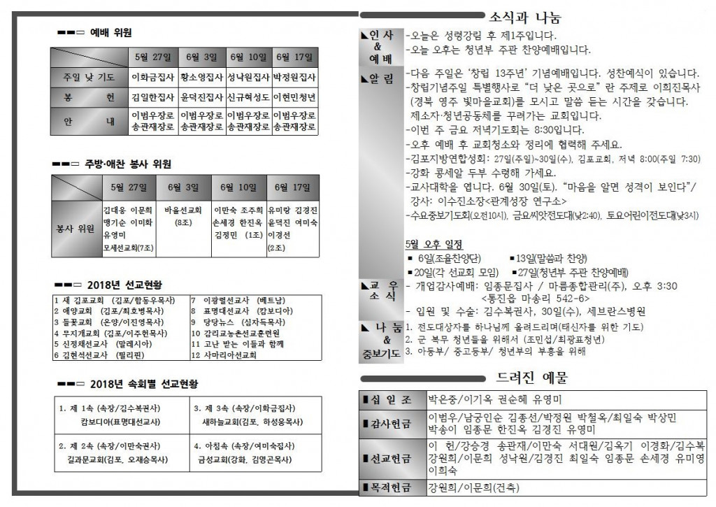 5월 네 번째 주일 주보입니다.