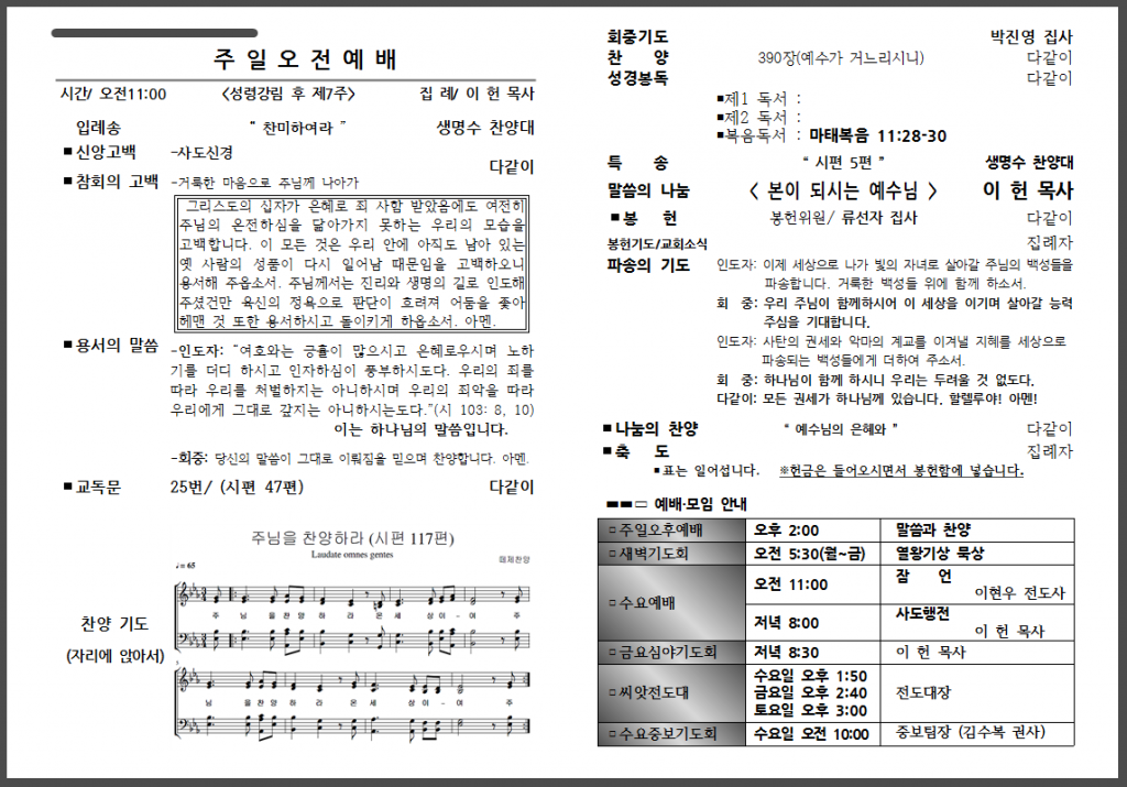 7월 두 번째 주일 주보입니다.