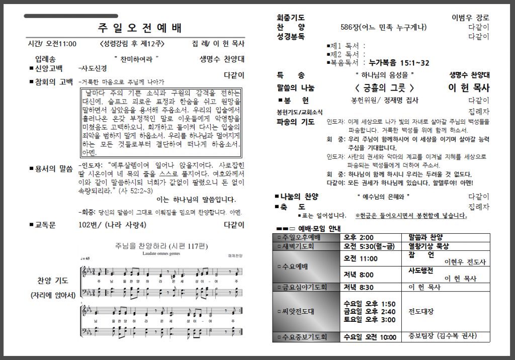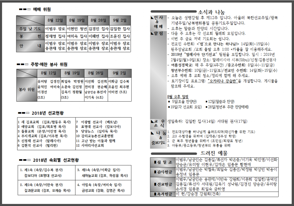 8월 두 번째 주일 주보입니다.