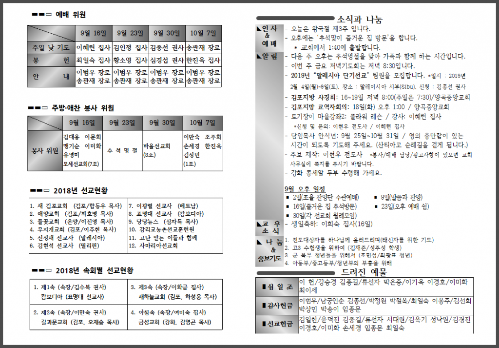 9월 세 번째 주일 주보입니다.