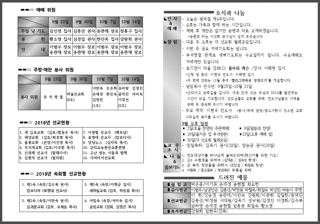 9월 네 번째 주일 주보입니다.