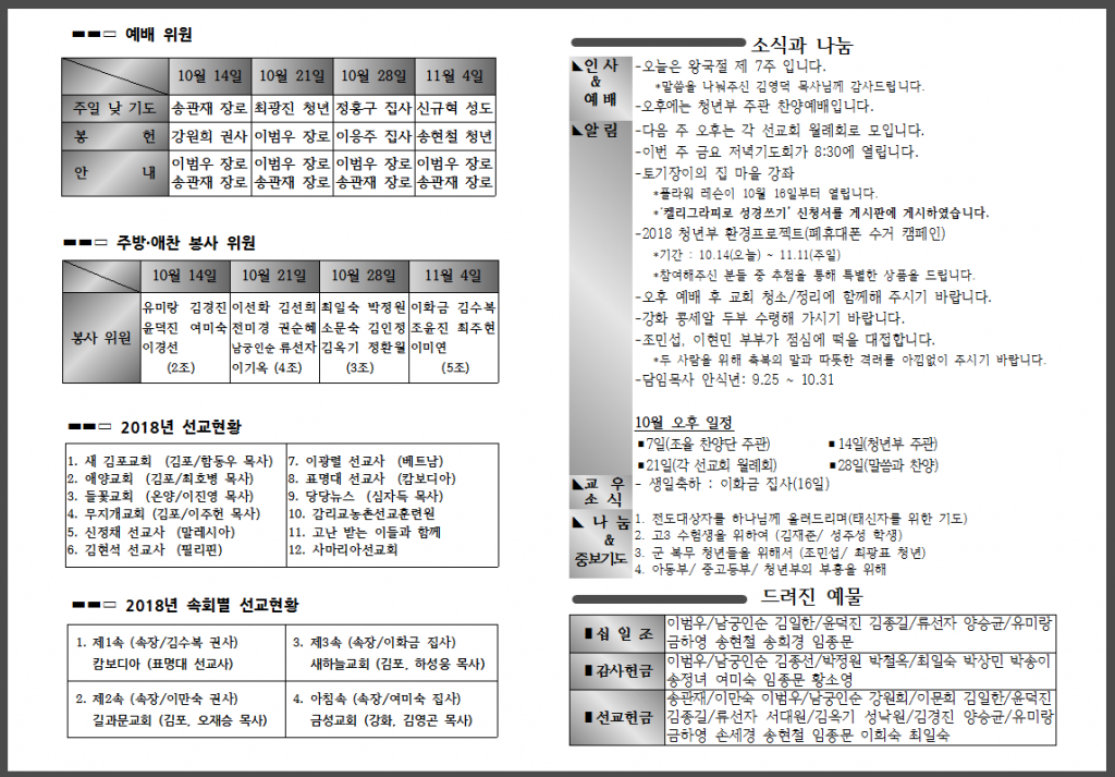 10월 두 번째 주일 주보입니다.