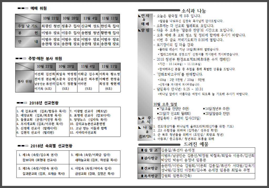 10월 세 번째 주일 주보입니다.