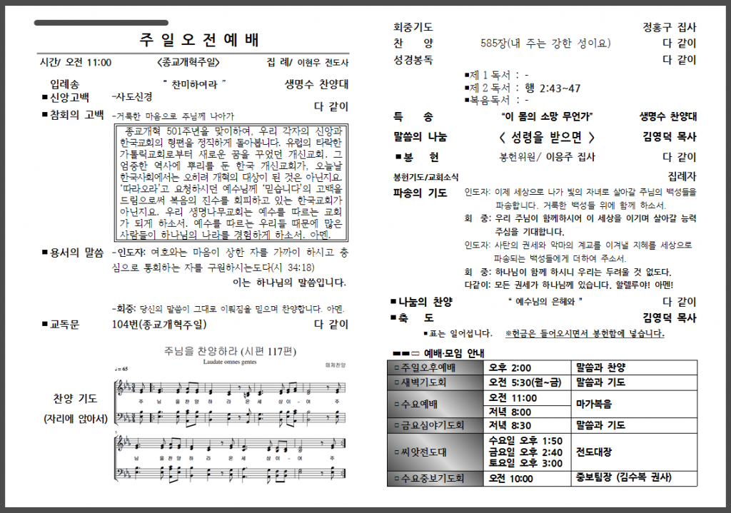 10월 마지막 주일 주보입니다.