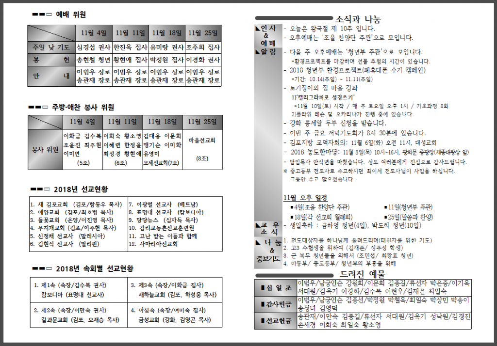 11월 첫 번째 주일 주보입니다.