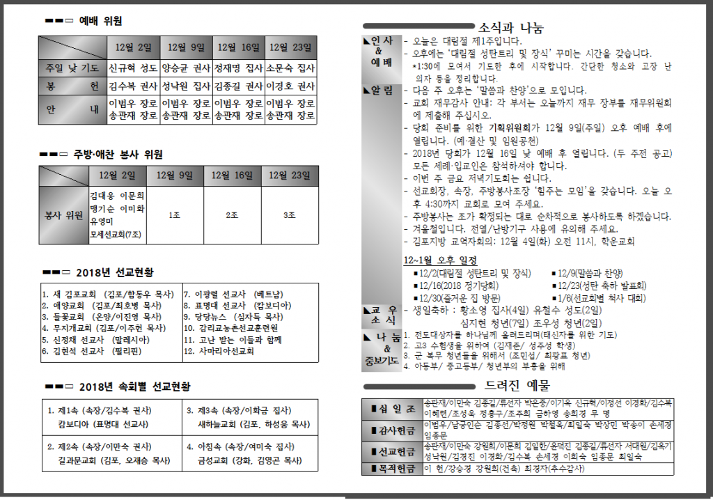 12월 첫 번째 주일 주보입니다.