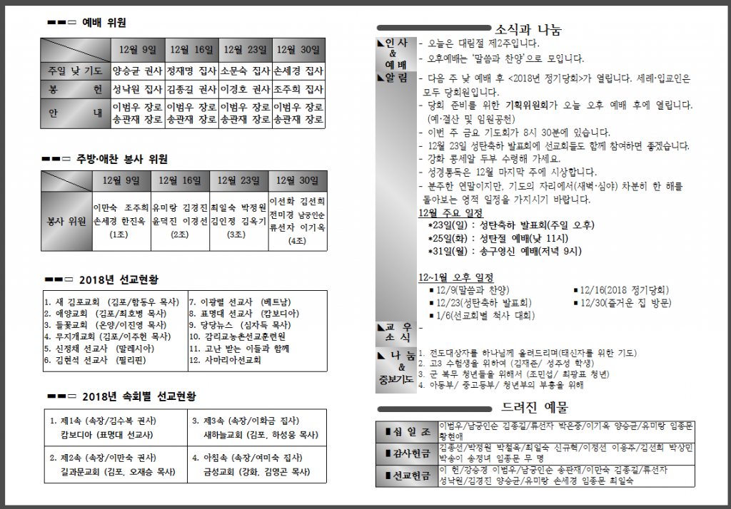 12월 두 번째 주일 주보입니다.