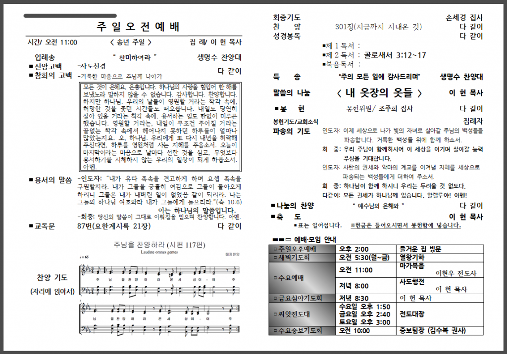 12월 마지막 주일 주보입니다.