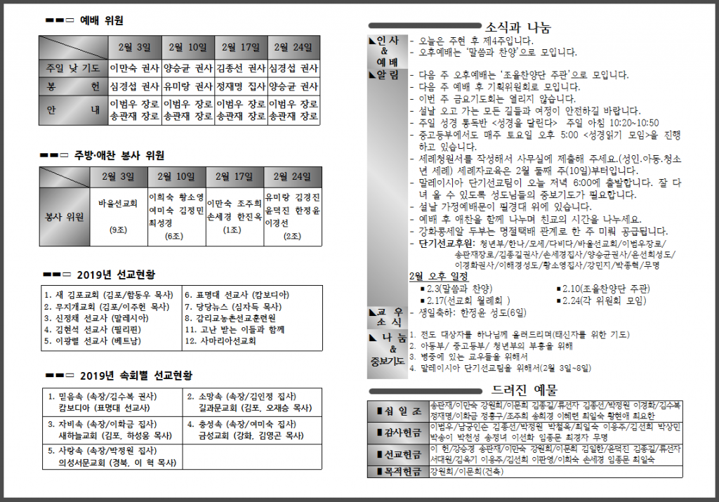 <자료> 2019년 2월 10일 주보 :: 다음 글