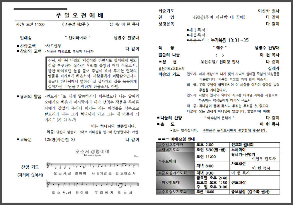 3월 세 번째 주일 주보입니다.