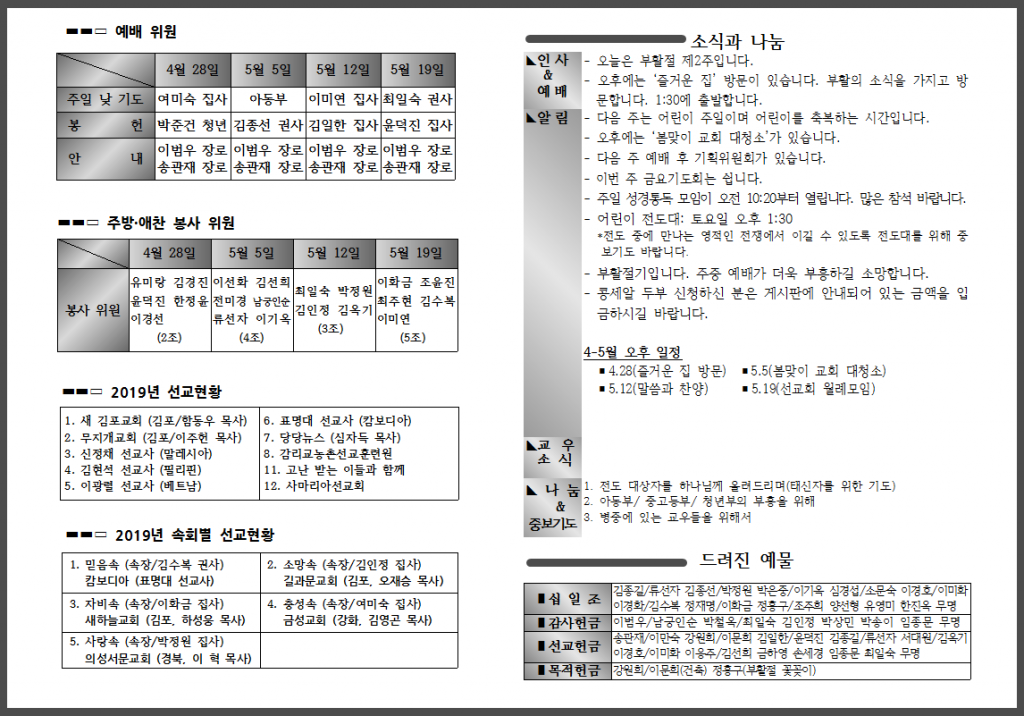 4월 마지막 주일 주보입니다.