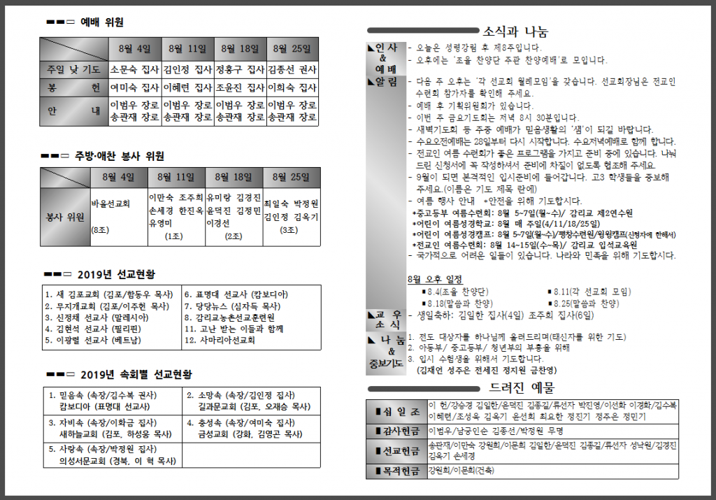 <자료> 2019년 8월 11일 주보 :: 다음 글