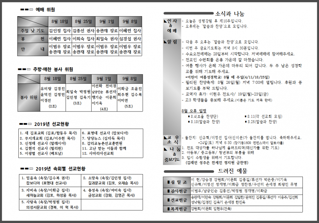 <자료> 2019년 8월 25일 주보 :: 다음 글