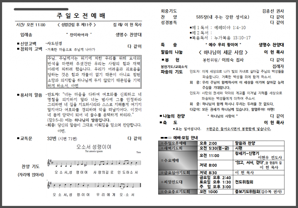 8월 마지막 주일 주보입니다.
