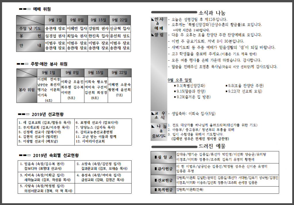 9월 첫 번째 주일 주보입니다.