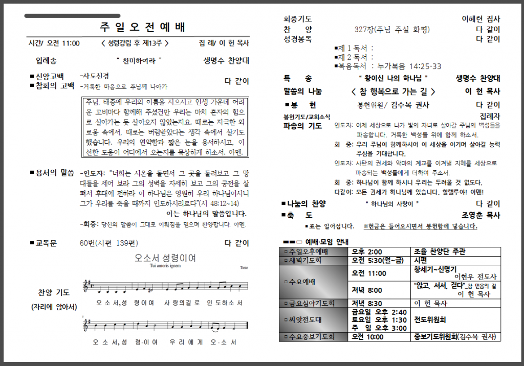 9월 두 번째 주일 주보입니다.