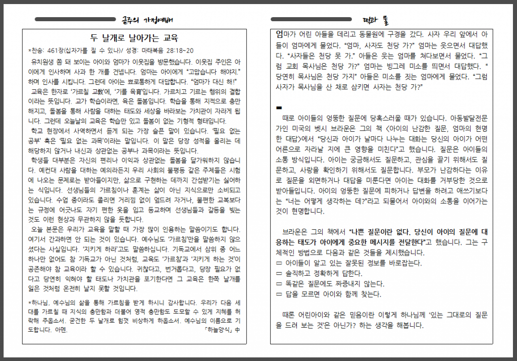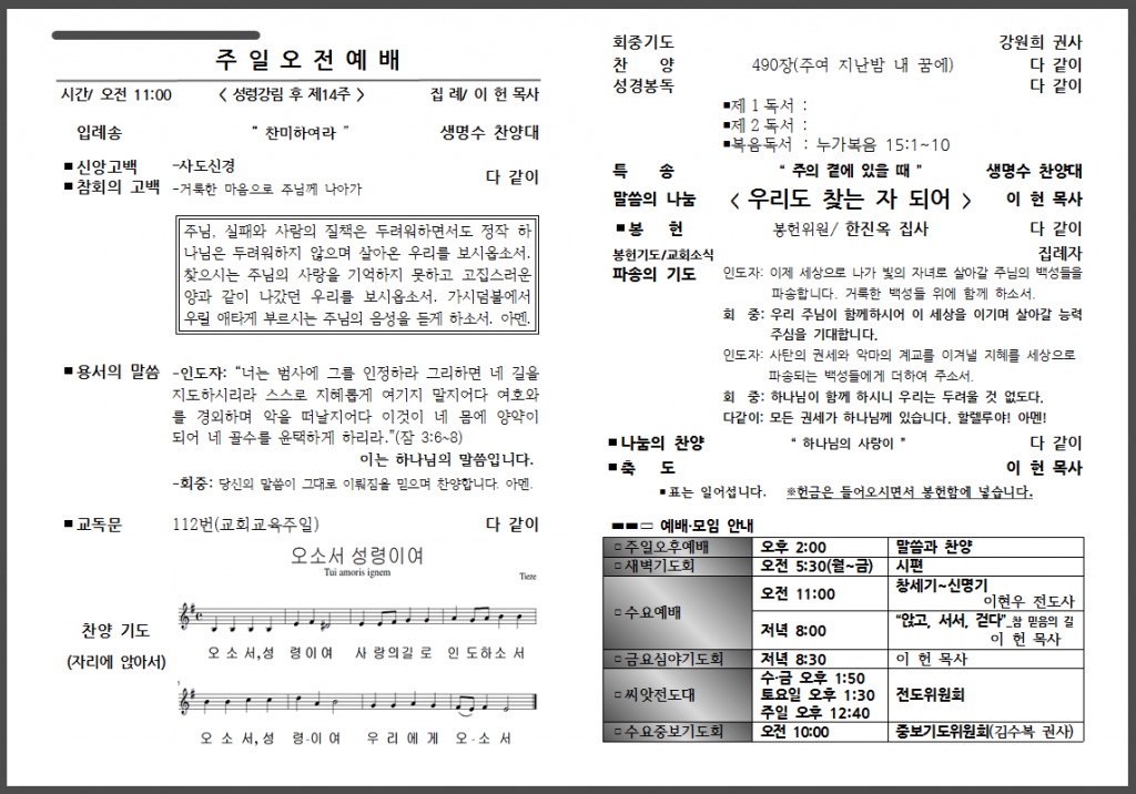 9월 세 번째 주일 주보입니다.