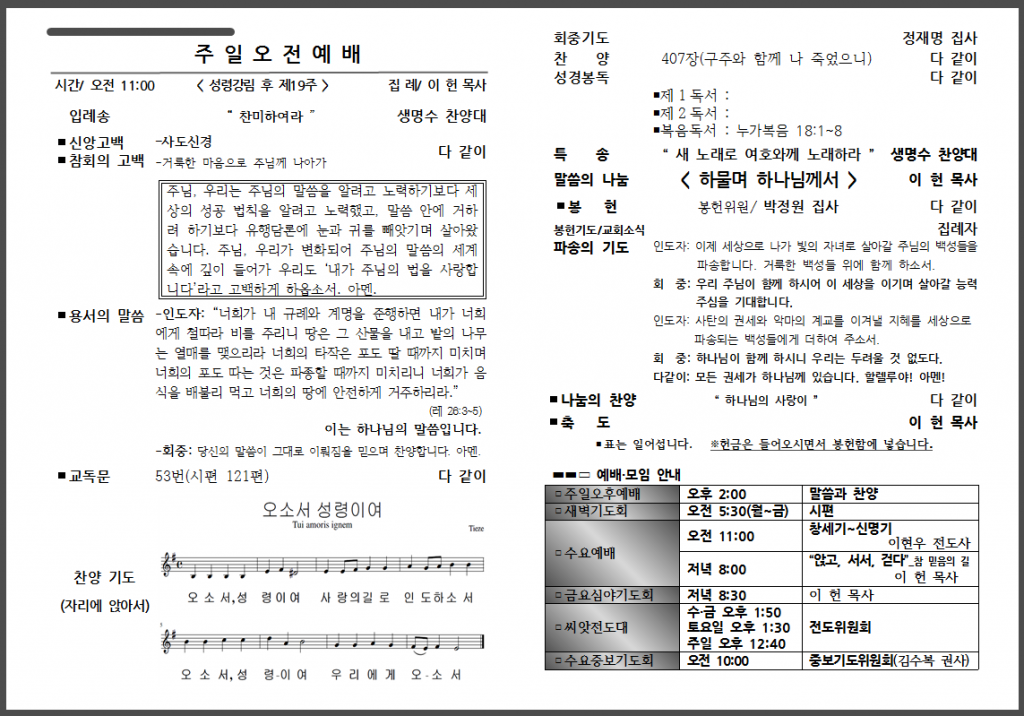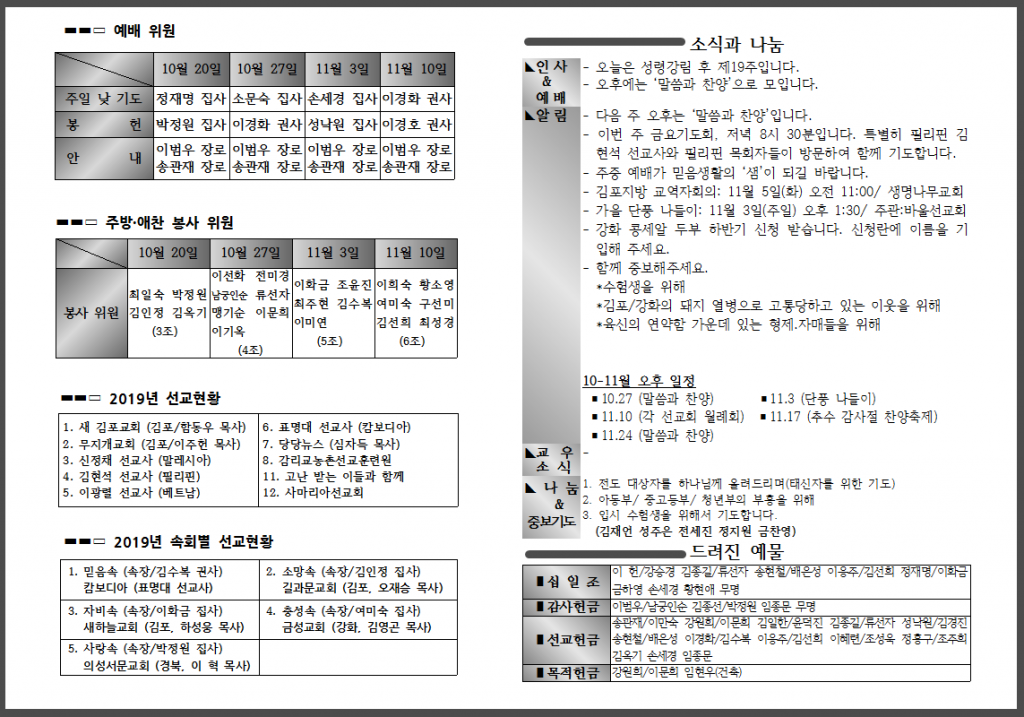10월 세 번째 주일 주보입니다.