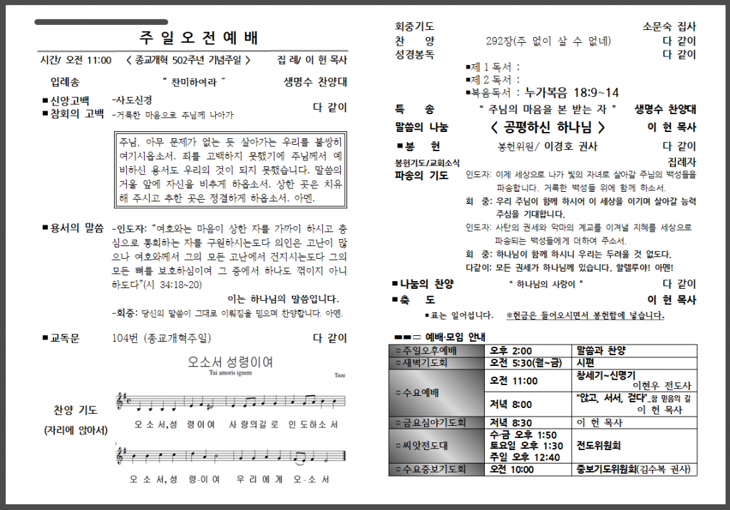 10월 마지막 주일 주보입니다.