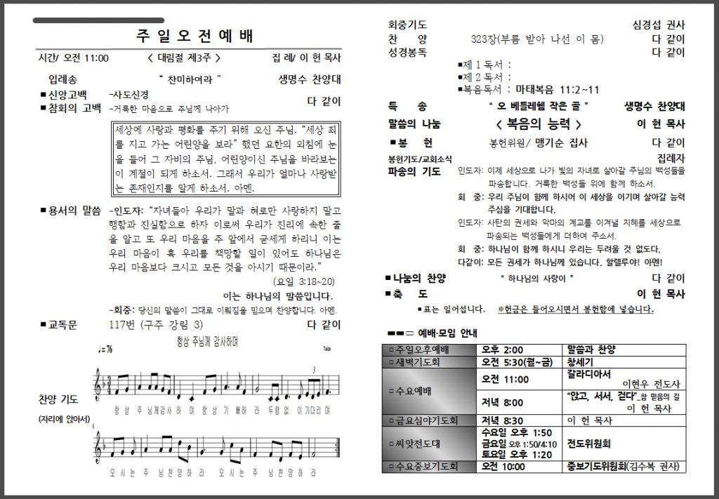 <자료> 2019년 12월 22일 주보 :: 다음 글