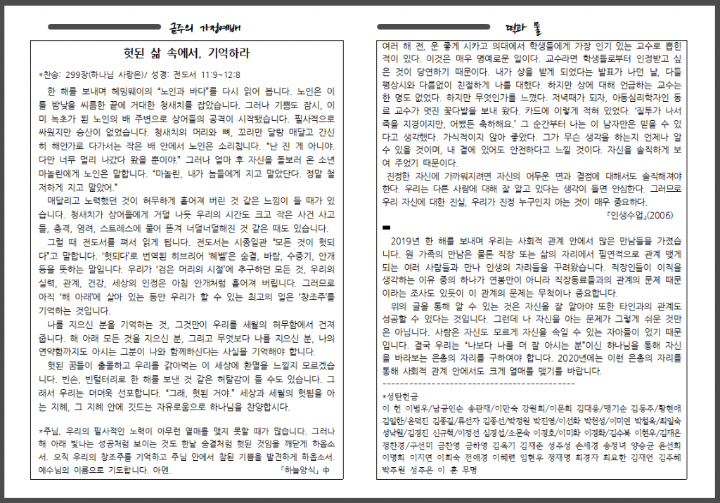 <자료> 2020년 1월 5일 주보 :: 다음 글