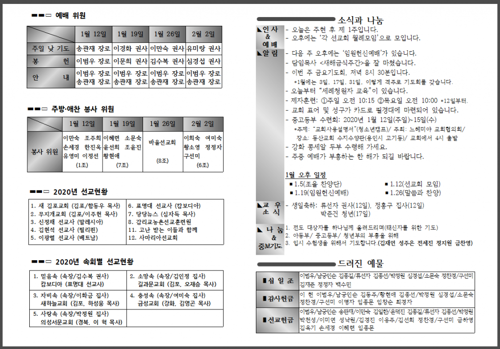 이전 글 :: <자료> 2020년 1월 5일 주보