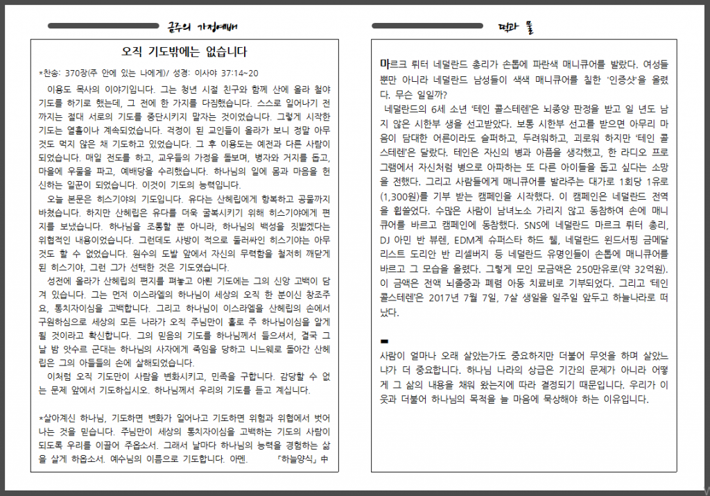 1월 세 번째 주일 주보입니다.