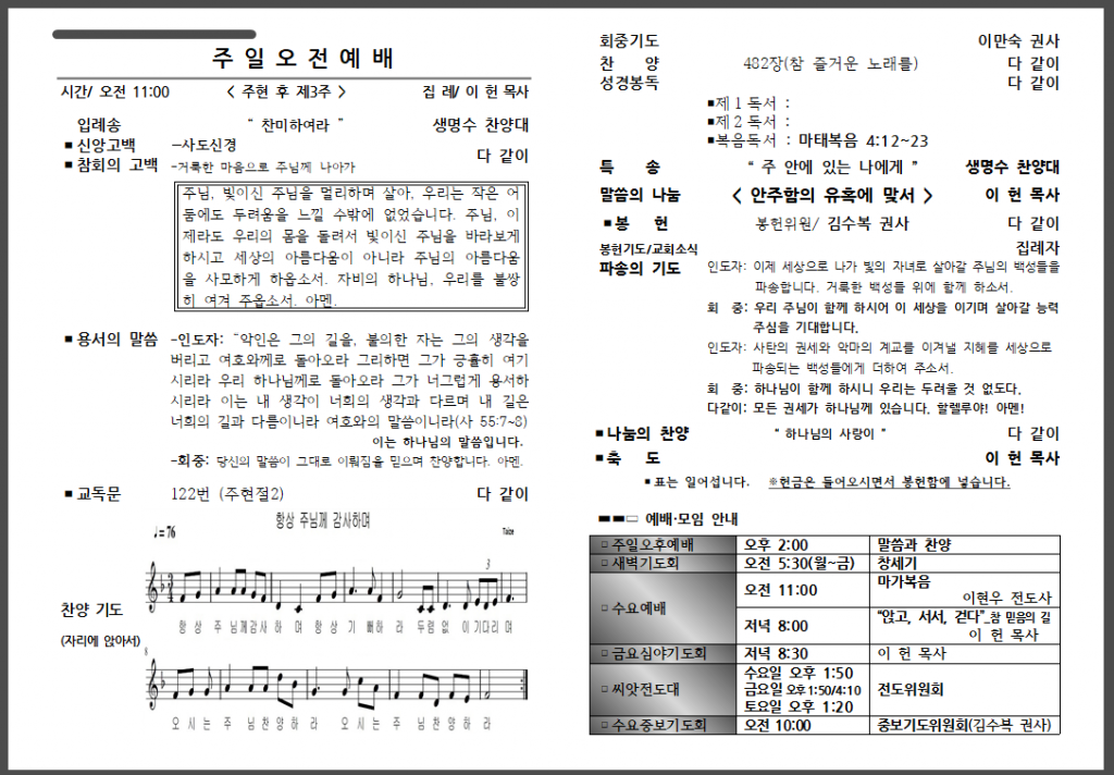 예배 안내