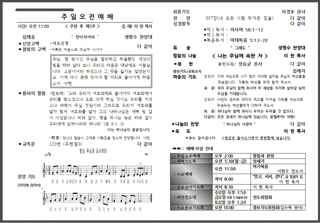 2월 두 번째 주일 주보입니다.