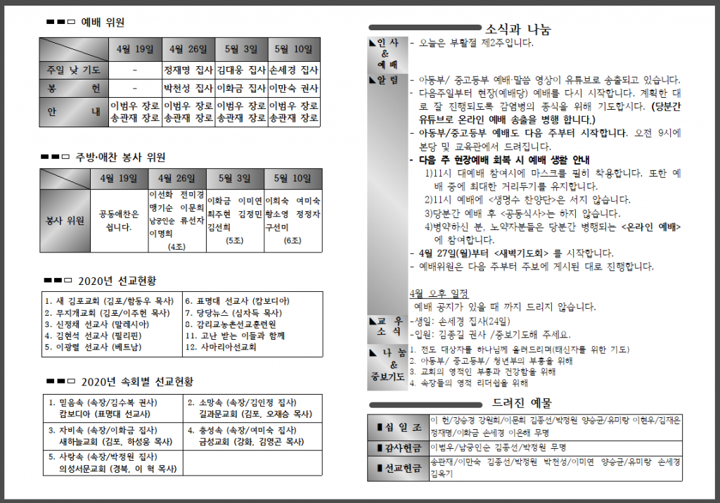 <자료> 2020년 4월 26일 주보 :: 다음 글